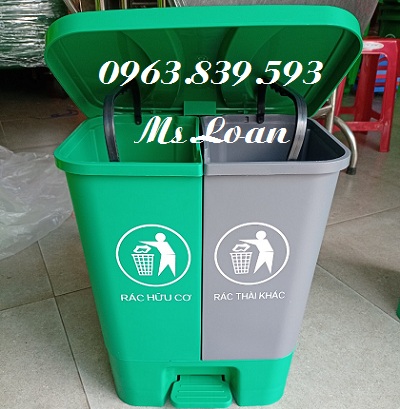 Thùng đựng rác văn phòng chia 2 ngăn đóng mở nắp chân đạp / 0963.839.593 Ms.Loan